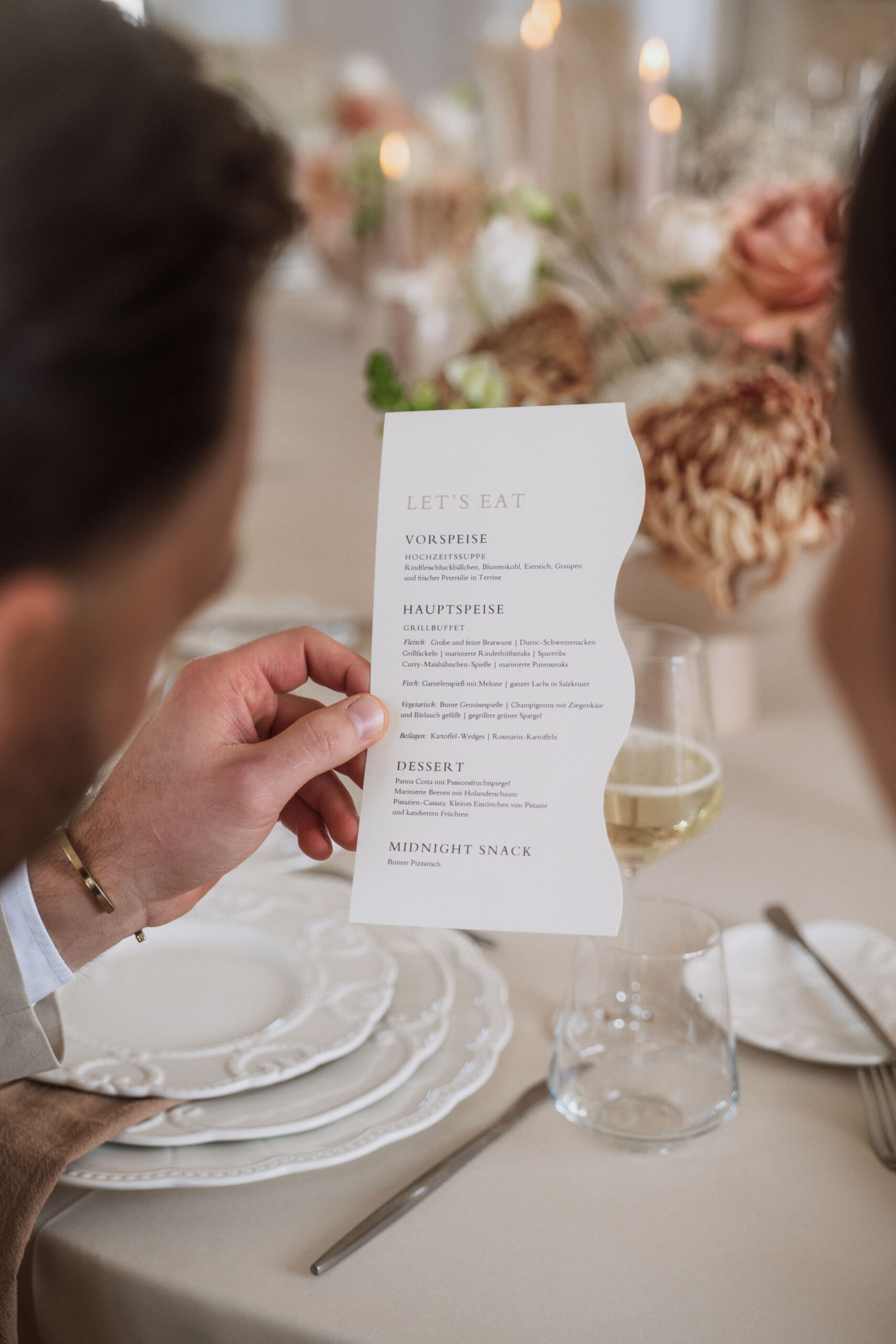 Anhand eines Probetischs können wir eure Wünsche und Vorstellungen visualisieren und euch so euer Traumkonzept vorstellen und gemeinsam mit euch den Feinschliff vornehmen. Wir können wichtige Details und Fragen klären und so die Basis für eine harmonische Zusammenarbeit schaffen. Für dieses erste Gespräch solltet ihr ungefähr 1,5-2 Stunden Zeit einplanen.